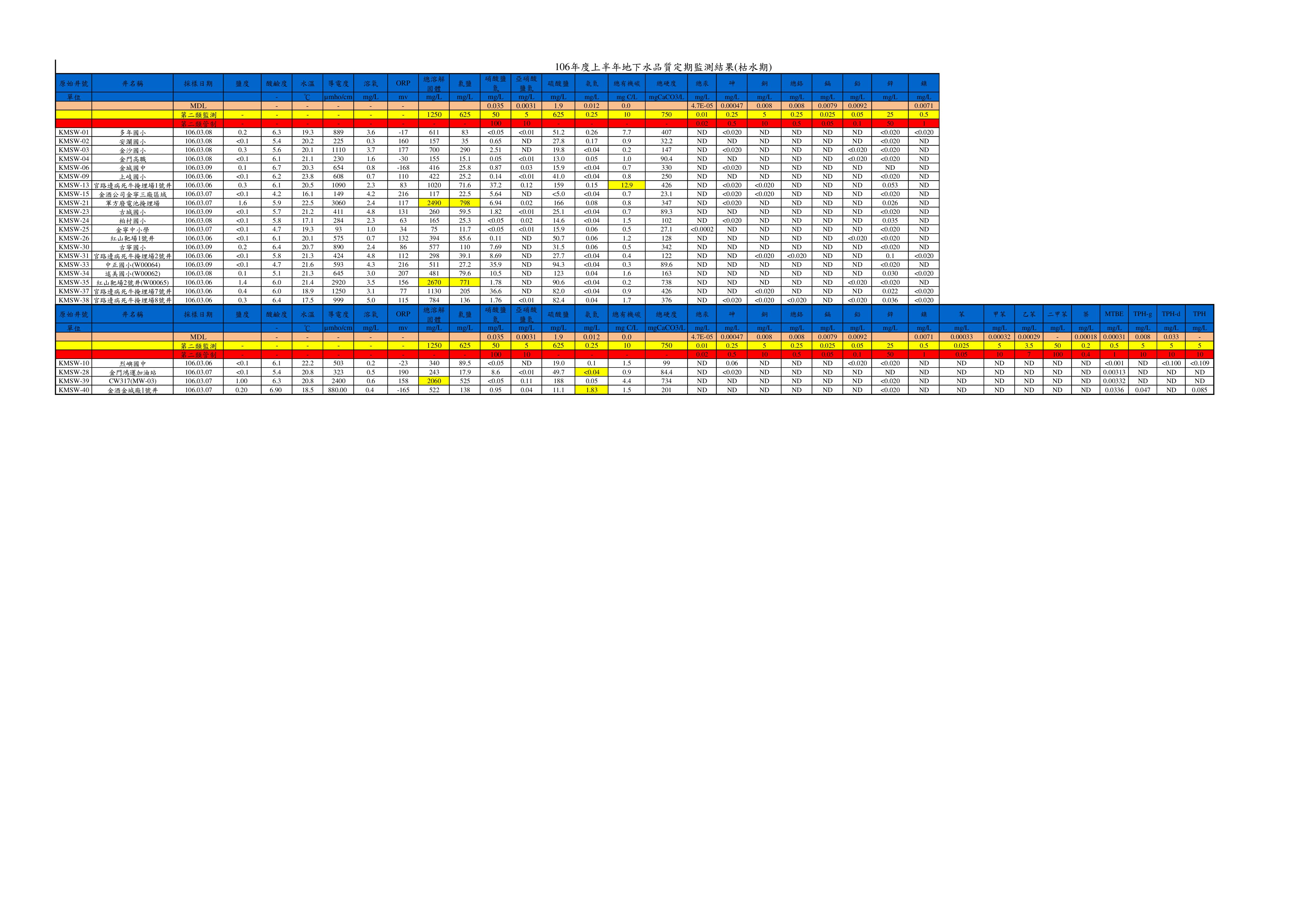 106年度土壤及地下水品質定期監測結果